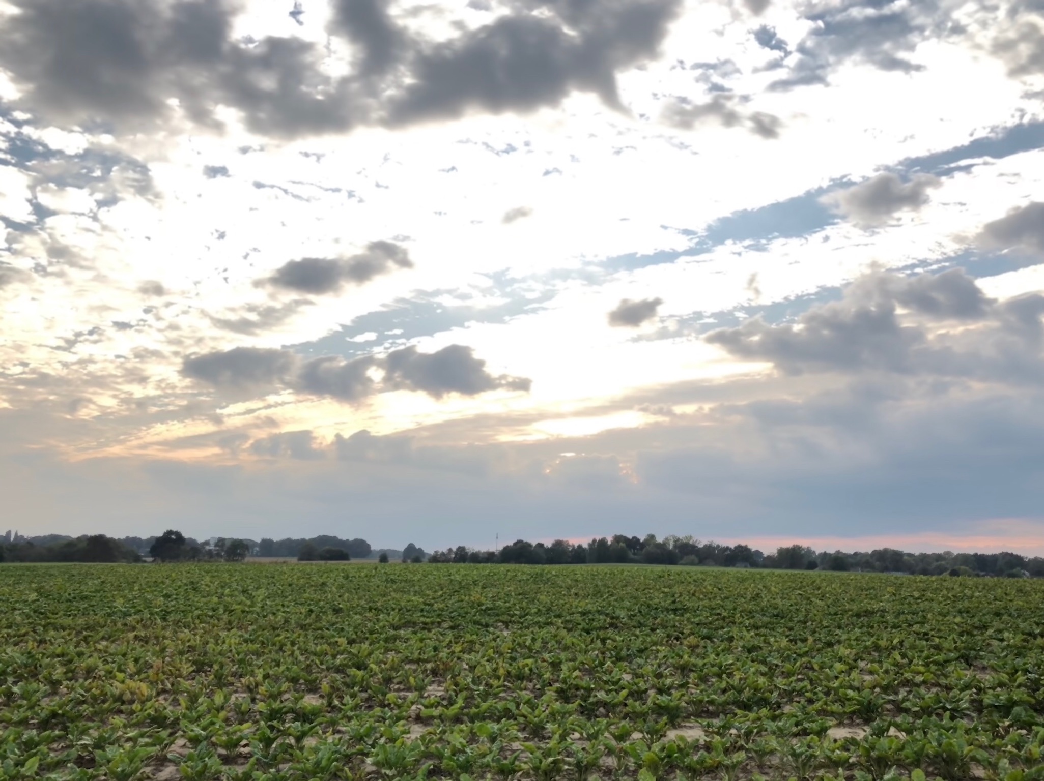 Champ de betteraves et ciel au coucher du soleil